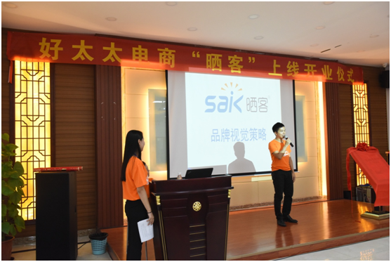 會議上,廣東好太太電商中心運營組長張杰先生對曬客品牌視覺策略進行講解,saik的logo極具創造性,saik中的「i」上的圖形寓意陽光,整體采用科技感的湖藍色調,代表著曬客年輕、時尚、智能、科技的品牌調性,曬客只有一個原則:至繁歸于至簡。