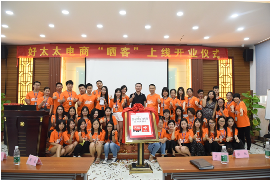 2017年9月28日,電商“曬客”上線開業儀式在廣東好太太集團總部舉辦。廣東好太太集團總裁助理陳春先生、廣東好太太電商中心總監陳慶軍先生、廣東好太太電商中心經理曹彩鳳女士、廣東好太太電商中心運營組長張杰先生蒞臨本次開業儀式。