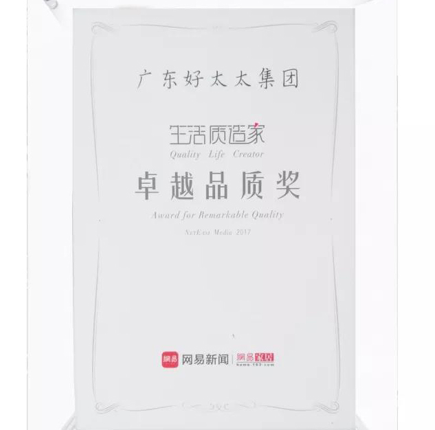 10月26日,由網易主辦的“生活質造家——網易生活品牌煥新發布會”在杭州舉行。廣東好太太集團榮獲“生活質造家—卓越品質獎”。