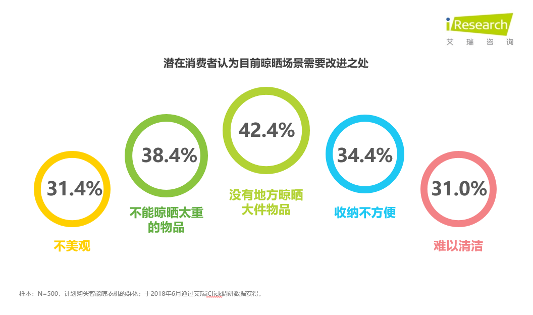 沒有地方晾曬大件物品是傳統晾曬場景的最大痛點,其次不能晾曬太大物品和收納不方便也受到詬病。大部分城市居民房屋面積有限,傳統晾曬工具功能單一,不能實現各種晾曬場景的變通,為智能晾衣機提供了市場機會。