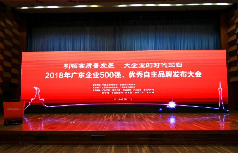 近日,由廣東省企業(yè)聯(lián)合會(huì)、廣東省企業(yè)家協(xié)會(huì)主辦的“2018年廣東企業(yè)500強(qiáng)、優(yōu)秀自主品牌發(fā)布大會(huì)”在廣州舉行。本屆大會(huì)以“引領(lǐng)高質(zhì)量發(fā)展,大企業(yè)的時(shí)代擔(dān)當(dāng)”為主題。