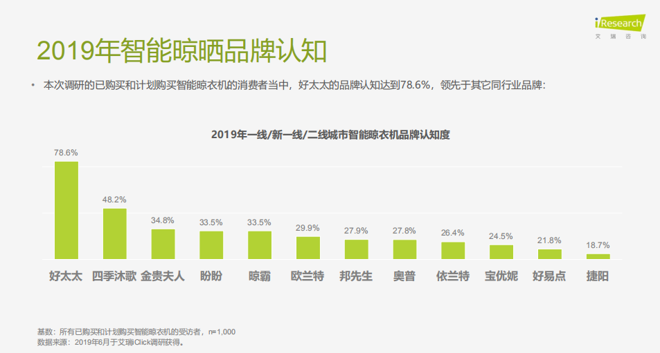 報告數據公開可知,好太太的品牌認知度更是達到78.6%,且調研的已購買和正在使用智能晾衣機的消費者當中,近6成購買過好太太的智能晾衣機,他們對目前所使用產品的滿意度最高達到 97.3%。數據背后體現的是,所有品牌晾曬市場都不及好太太一家的體量大,好太太在業內占不僅是“大牌子”,而是“超級大牌”。