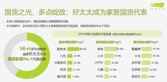 報告顯示,消費者普遍認同的國貨家居代表品牌有好太太、水星家紡、歐派、富安娜與九牧等。
