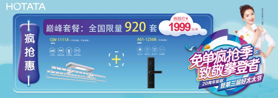 *瘋搶惠:“好太太晾衣機GW-1111A(不含安裝,不含衣架) + 科徠尼智能鎖A61-1256B(不含安裝)”巔峰套餐,特價僅需1999元/套。