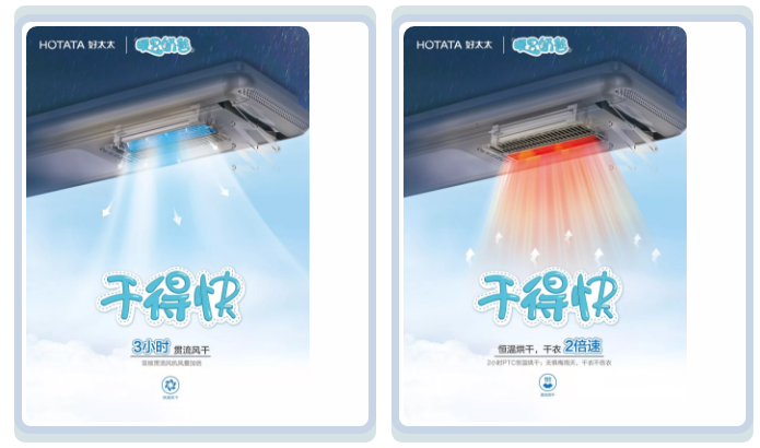 好太太奶爸機(jī),自帶一鍵風(fēng)干/烘干功能,在秋冬天氣晾曬也不糟心,PTC恒溫陶瓷,不傷衣,一鍵即可烘干衣物。