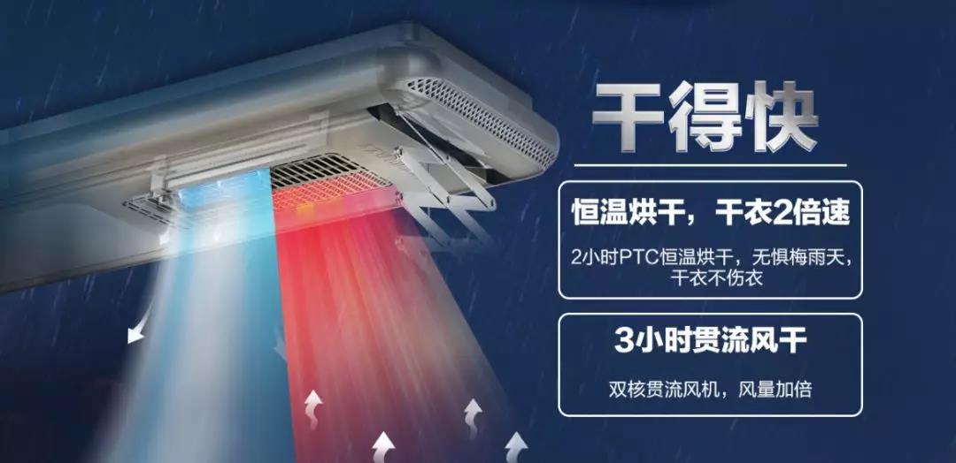 開啟好太太智能晾衣機一鍵烘干功能,2小時,還你干爽衣物。
