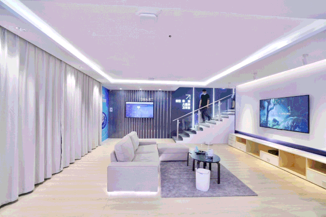 感應式照明燈、可聲控、感應的智能陽臺、客廳“一鍵休閑模式”、智能家庭影院等,讓人大開眼界,夸口稱贊,引得觀展人士的紛紛圍觀、上場體驗。