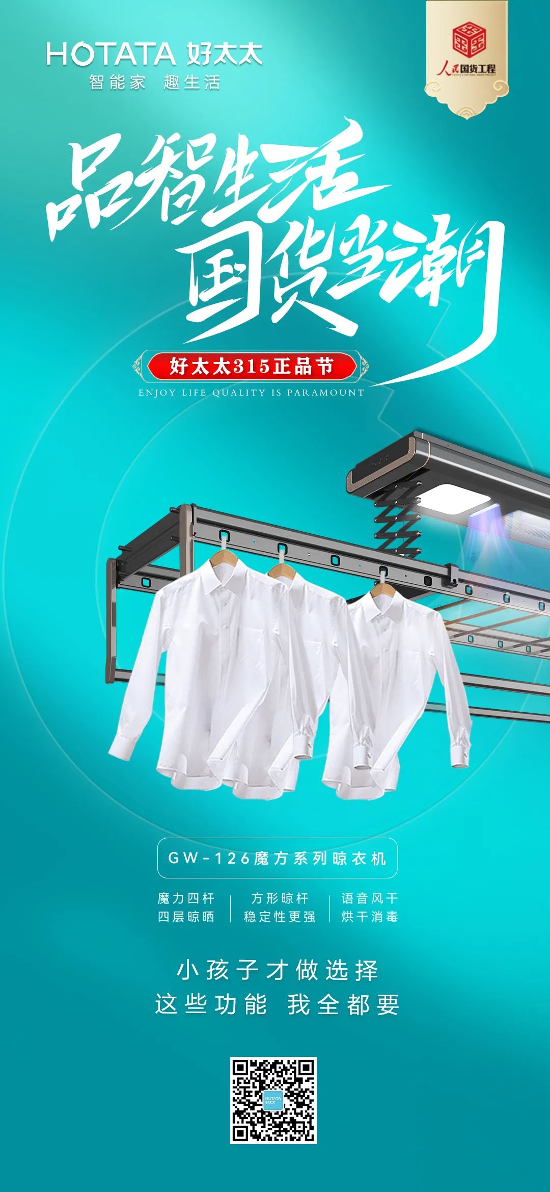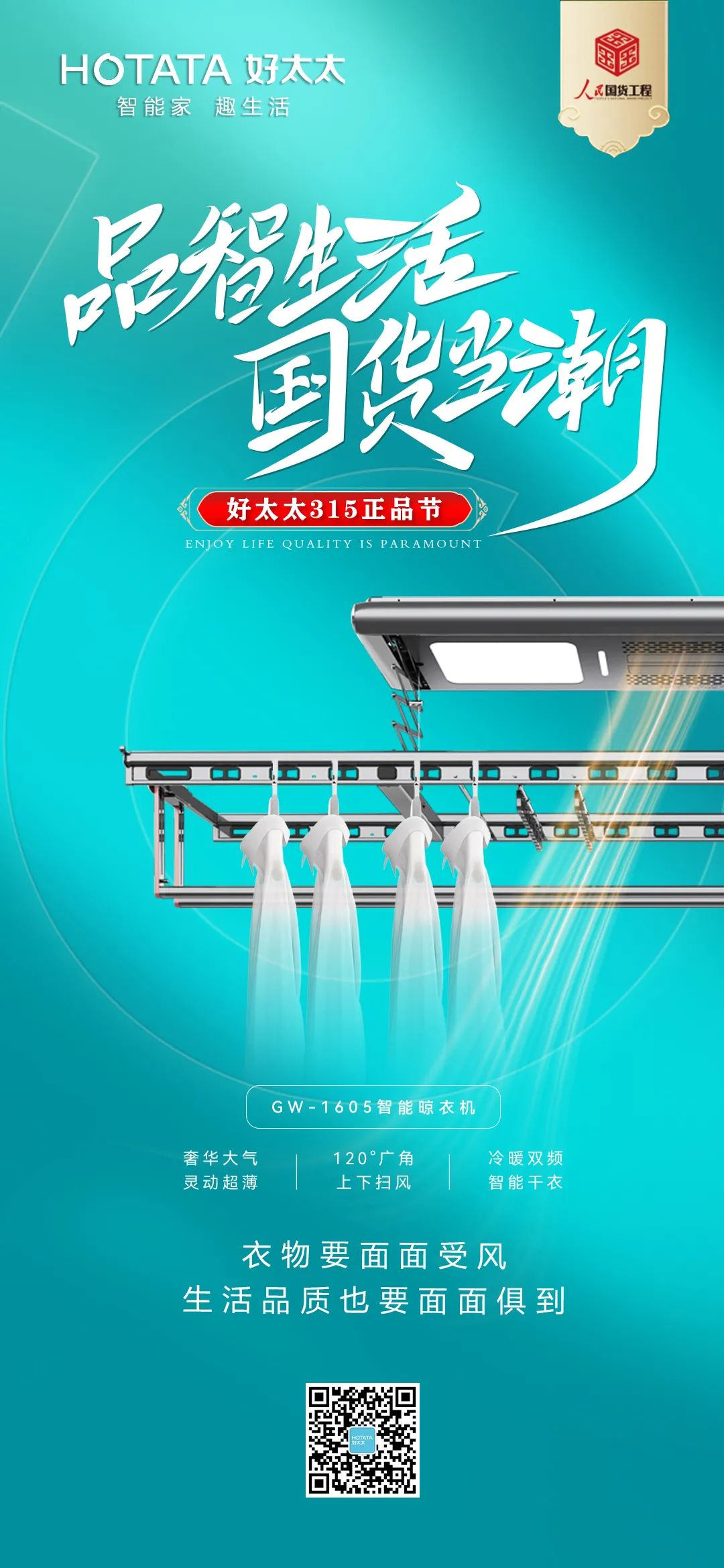 好太太作為國貨卓越品牌和晾曬行業領軍品牌,此次入選人民國貨工程,不僅是產品實力的有力證明,也是好太太品牌發展的一次躍進。