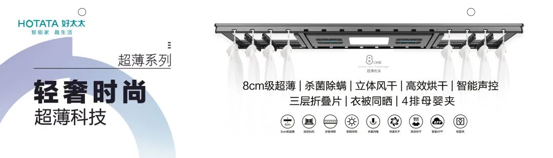 為滿足人們防疫需求,好太太智能晾衣機(jī)配備智能殺菌消毒功能,紫外線除菌消毒做到99%有效殺菌,守護(hù)衣物健康。