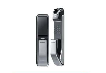 我們的下一個選擇。三星的 SHS-P718-LMK 智能鎖鎖與我們列表中的其他智能鎖不同。這款三星智能鎖不依賴于轉動把手,而是推/拉概念。