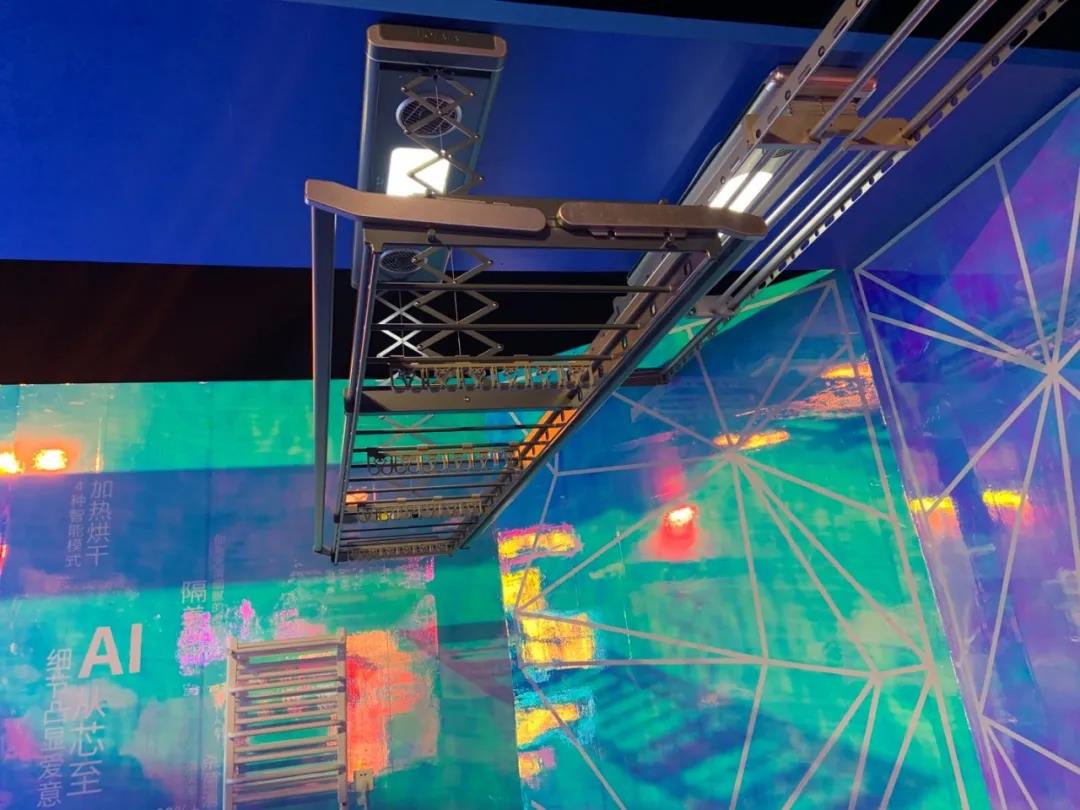 現場展示好太太水晶款智能晾衣機,集自動下降,智能干衣、消毒殺菌功能于一身,一站式解決晾曬難題,外觀融入了施華洛世奇?元素,獨特切割的純凈璀璨水晶邂逅匠心巧思的智能晾曬,天生智能與閃耀浪漫發生了碰撞。