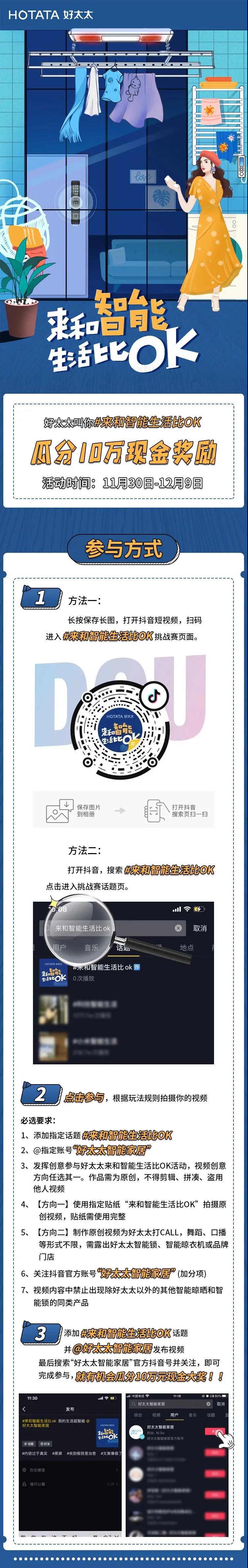 即日—12月9日,好太太智能家居將發起抖音全民任務挑戰賽,用戶通過在抖音上搜索【來和智能生活比OK】參與活動,就有機會瓜分10萬現金大獎(心動)!