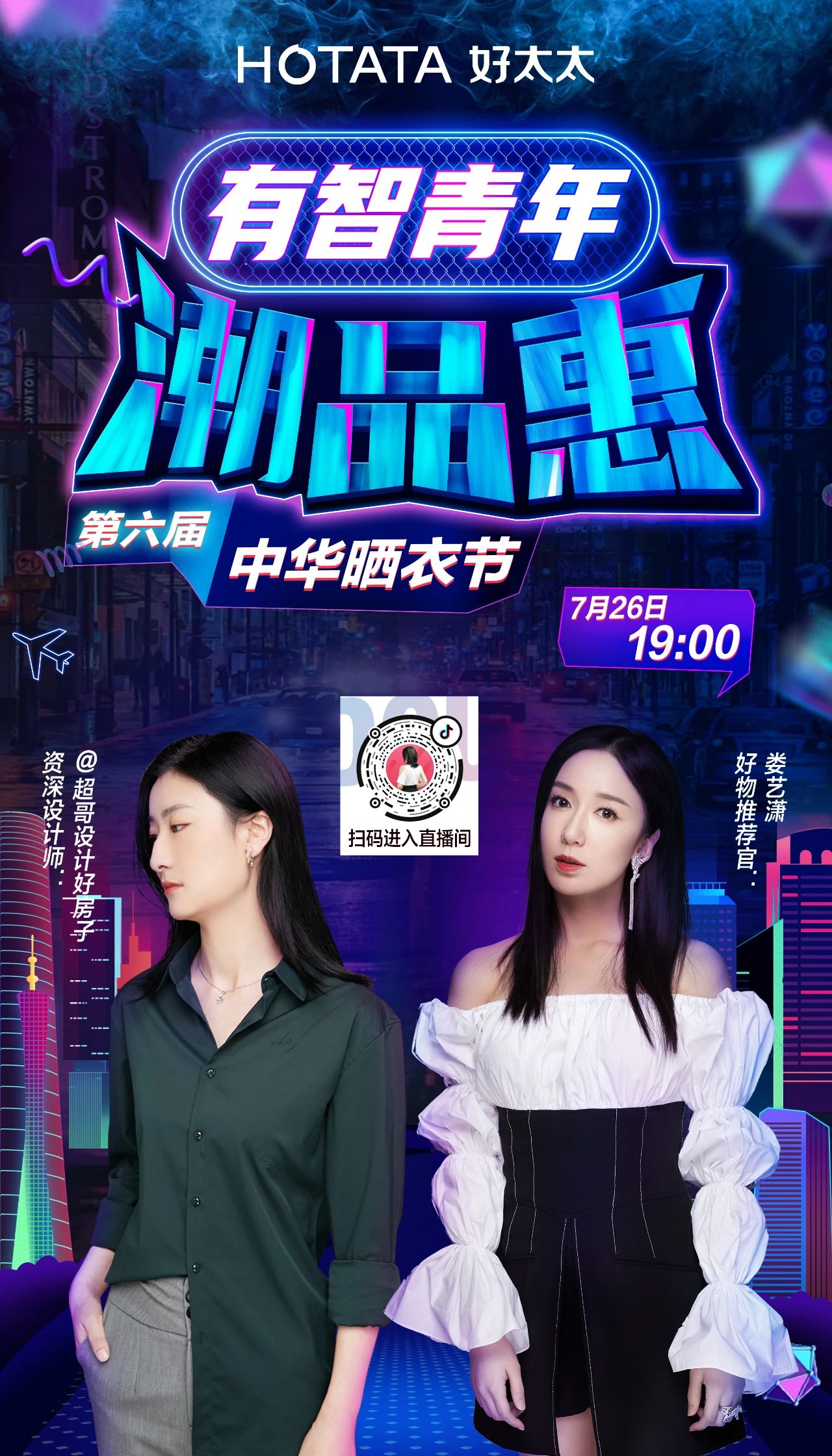 出于傳統民族文化的傳承,以及對健康家居生活理念的倡導,廣東好太太集團于2015年聯合各大媒體舉辦“中華曬衣節”活動。今年7月26日也將迎來第六屆“中華曬衣節” ,以“有智青年 潮品惠”為主題,旨在促進年輕時尚與智能生活的有機結合,在直播風口上,攜手“好物體驗官”婁藝瀟與“帶貨王”散打哥共度佳節,以智能晾曬體驗為切入點,同步體驗智能鎖等家居好物,全面體驗好太太智能家居生態。以年輕人的眼光洞察智能家居市場,直戳當代年輕人消費需求和生活痛點,讓消費者在忙碌生活之余能夠有充足的時間去擁抱享受美好生活。